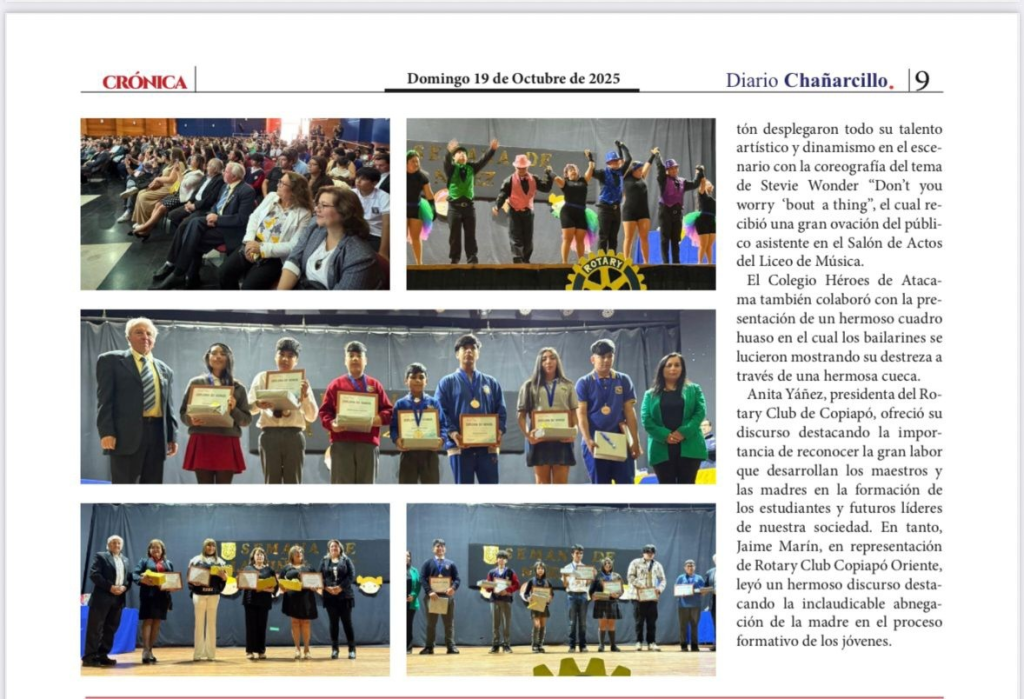 Rotary Club de Copiapó comparte imágenes y la publicación de la prensa escrita local del diario Chañarcillo, el artículo de lo que fue la ceremonia oficial de la celebración de SEMANA DE LA NIÑEZ 2025 en la comuna de Copiapó.